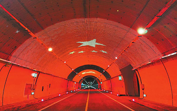 夹金山隧道穹顶五星红旗灯光图案。 四川日报全媒体记者 华小峰 摄