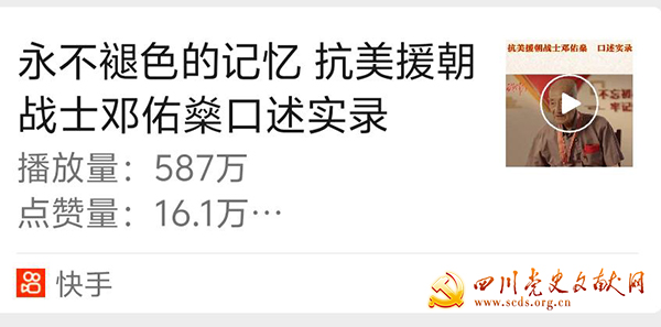 自贡党史短视频《永不褪色的记忆—抗美援朝战士邓佑燊口述实录》爆火出圈