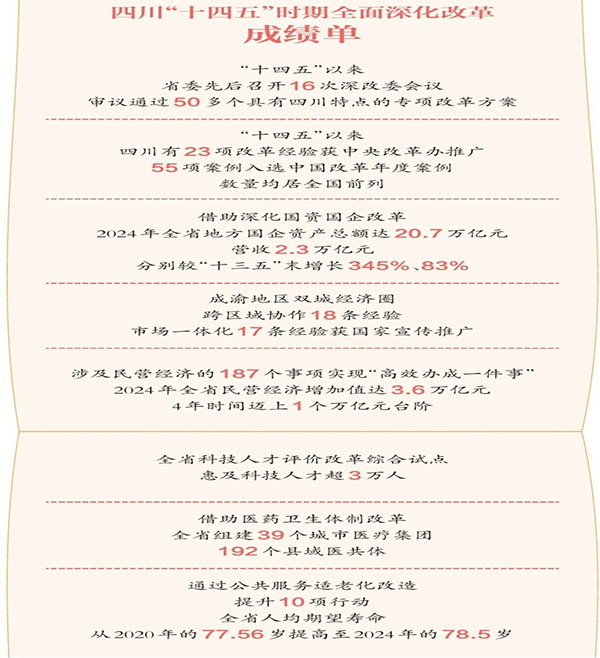 同日 省政府新闻办举行“决胜‘十四五’续写新篇章”系列主题新闻发布会第四场,介绍四川“十四五”时期全面深化改革主要成就。发布会介绍,“十四五”时期,四川认真落实党中央改革部署,主动服务国家改革大局,推动全面深化改革向广度和深度进军,助推全省高质量发展迈上新台阶。