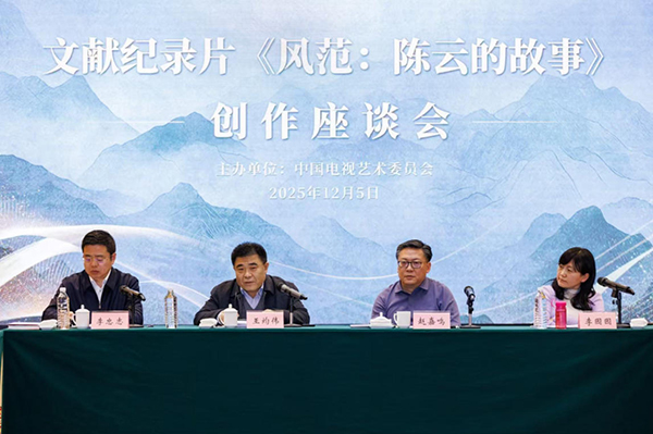 为深入学习贯彻习近平总书记在纪念陈云同志诞辰120周年座谈会上的重要讲话精神,持续深化对陈云同志思想生平的研究宣传,及时总结领袖人物题材文献纪录片创作经验,2025年12月5日,由中国电视艺术委员会主办的文献纪录片《风范:陈云的故事》创作座谈会在北京召开。
