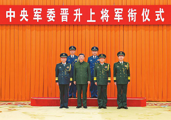 习近平颁发命令状并向晋衔的军官表示祝贺
