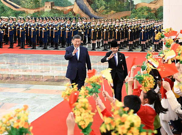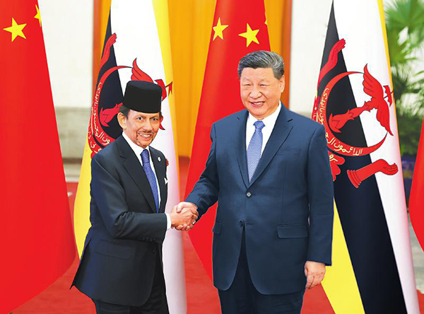 习近平指出,中文传统友谊源远流长。建交30多年来,双方不断深化政治互信,积极对接发展战略,各领域务实合作取得丰硕成果,在国际和地区事务中保持良好配合,树立了大小国家平等相待、互利共赢的典范,也为地区和平稳定和发展繁荣作出了积极贡献。中国和文莱共建命运共同体,顺应时代发展大势,符合两国和两国人民根本利益,开启了两国关系崭新篇章。双方要乘势而上,深化互利合作和战略协同,彼此尊重、坦诚互信,永远做隔海相望的好邻居、相互信赖的好朋友、共同发展的好伙伴。
