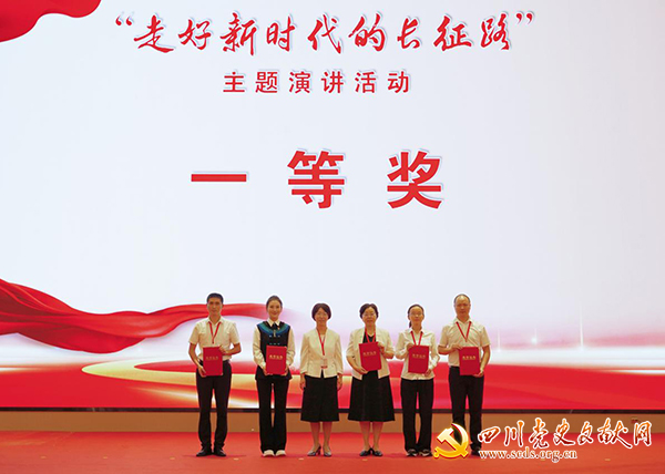“走好新时代的长征路”主题演讲活动自今年6月启动以来,全省各级机关、企事业单位的广大党员干部、团员青年聚焦红军长征史中的“四川篇章”、伟大长征精神的“四川印记”、新时代长征路上的“四川实践”,积极创作富有思想性、感染力的演讲作品,其中189部作品进入复评。宣讲会上为5名一等奖、10名二等奖、15名三等奖、30名优秀奖以及组织奖进行了颁奖。优秀作品将在学习强国四川学习平台、“文数四川”“四川党的建设”“天府新青年”、四川党史文献网、“四川党史”视频号和抖音号等媒体平台进行展播宣传。