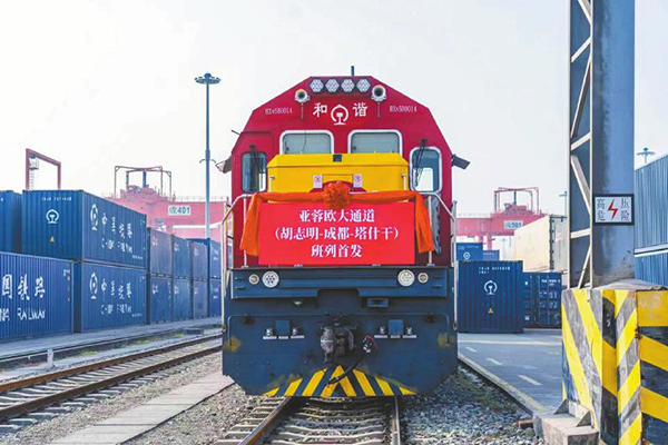 同日 成都国际铁路港,亚蓉欧大通道(胡志明—成都—塔什干)班列首发。这是中越班列和中亚班列首次在成都“牵手”,标志着亚蓉欧大通道再添运输新动脉——首次实现东南亚与中亚区域的班列互联互通。