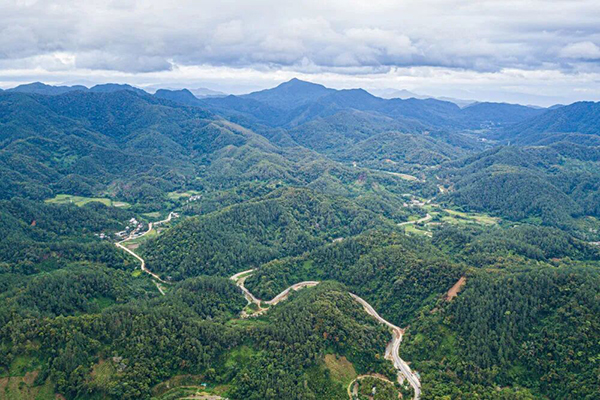 这是2021年4月25日拍摄的广西桂林市全州县才湾镇毛竹山村(无人机照片)。新华社记者 曹祎铭 摄