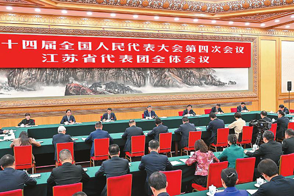 3月5日下午,中共中央总书记、国家主席、中央军委主席习近平参加他所在的十四届全国人大四次会议江苏代表团审议。