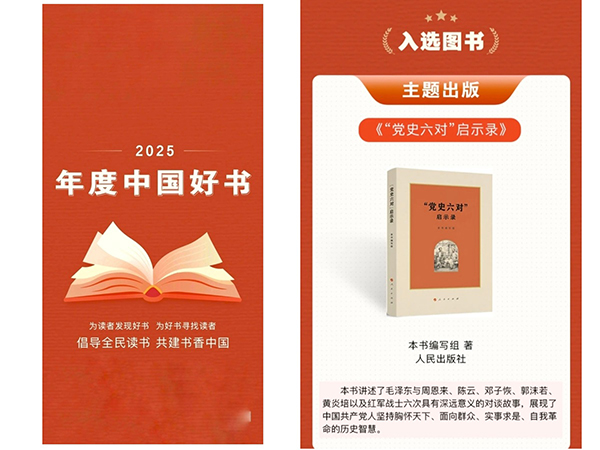 中央党史和文献研究院《“党史六对”启示录》入选2025年度“中国好书”,位居“入选图书”榜首